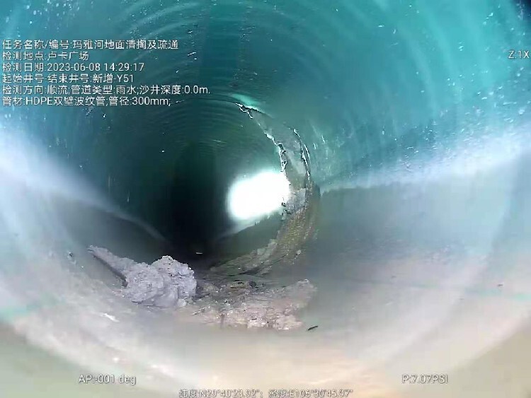 3、声纳检测是一种采用声波反射原理对管道变形、淤泥量化分析的检测技术。适用于管道内满水或水位较高,且不具备降水条件。