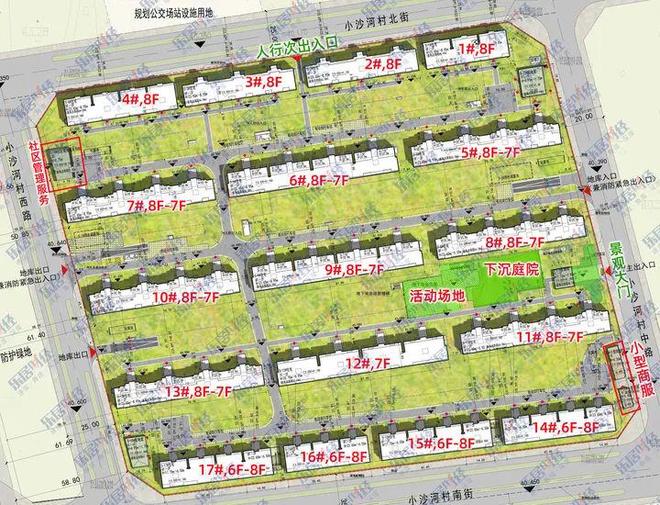 星耀未来规划建设17栋住宅楼,共978户,均为6-8层矮板,部分为顶退户型;南边4栋为错层设计,东侧一个单元8层,西边几个单元为6层。