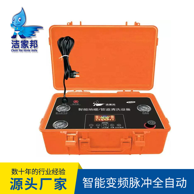 洁家邦智能变频脉冲管道清洗设备,可清洗包括地暖管,暖气片,等各种家庭管路。可配合地暖管道除垢剂使用。