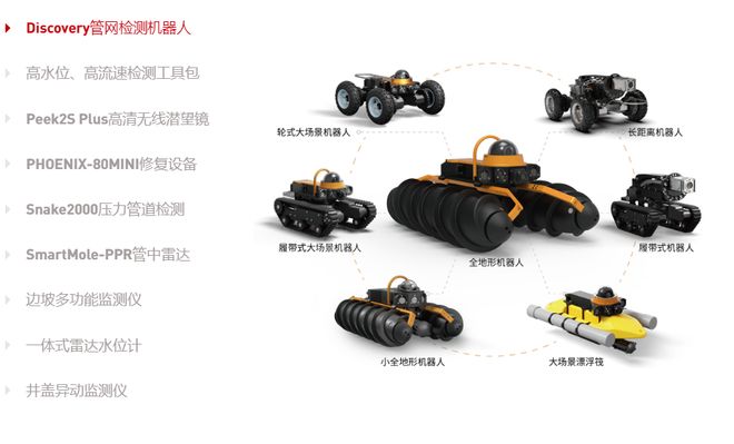 公司主营产品包括QV潜望镜、CCTV检测机器人、多功能复杂场景管网检测机器人、国内领先的供水压力管道检测机器人、融合AI技术的智慧运维平台。自有品牌行墨科技的光固化修复软管材料,搭配多款光固化修复设备,非开挖修复领域已有诸多成功案例。
