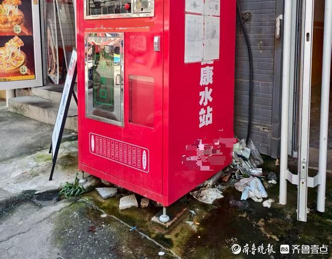 不过,这些设备的维护保养情况却参差不齐。在历山北路,一台智能净水器底部出现了渗水情况,周围地面上长满了青苔,散落着烟头、塑料袋、纸巾等。取水口附近肉眼可见明显水垢、污垢、青苔和锈迹。