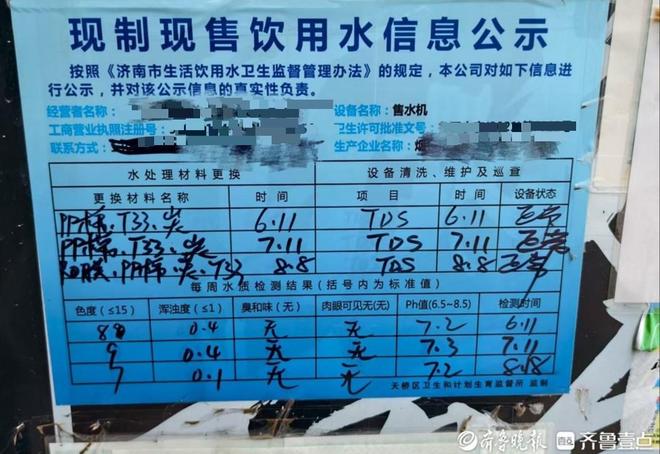 事实上,济南市早在2017年就对现制现售饮用水经营企业做出了统一规范性要求,要求注明经营者的基本信息,公示水质检测报告、卫生许可证、从业人员健康证Ag真人国际官网等信息。此外,经营者每半年需通过专业机构对水站的细菌总数、大肠菌群及化学耗氧量进行检测,各项数据达标后才能算合格的供水设备。
