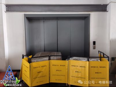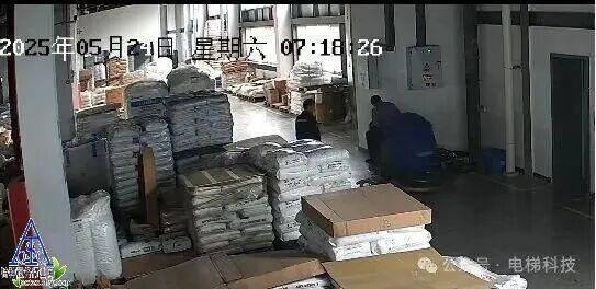 事故地点位于1号厂房3楼西侧货运电梯处,3楼电梯层门从左至右的第二扇、第三扇层门向井道内倾斜,层门表面存在黑色片区刮擦痕迹,打开层门见下方轿厢顶部黄色框架内横置一台洗地机,洗地机部分零件掉落在旁。厂房1楼电梯轿厢顶部塌陷,电梯风扇及灯具壳脱落。