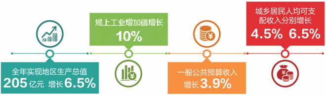 预计全年实现地区生产总值205亿元,增长6.5%;规上工业增加值增长10%;一般公共预算收入增长3.9%;城乡居民人均可支配收入分别增长4.5%、6.5%。