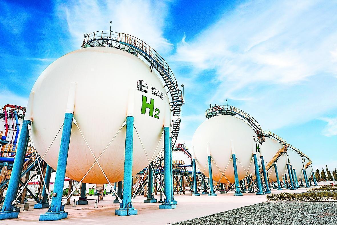 库车绿氢示范项目 2023年8月30日,新疆库车绿氢示范项目全面建成投产。这是我国首个实现万吨级绿氢炼化全产业链贯通的项目,电解水制氢能力2万吨/年、储氢能力21万标准立方米、输氢能力2.8万标准立方米/小时,年可减少二氧化碳排放48.5万吨。 (图片由 王东亮 刘 强 提供)